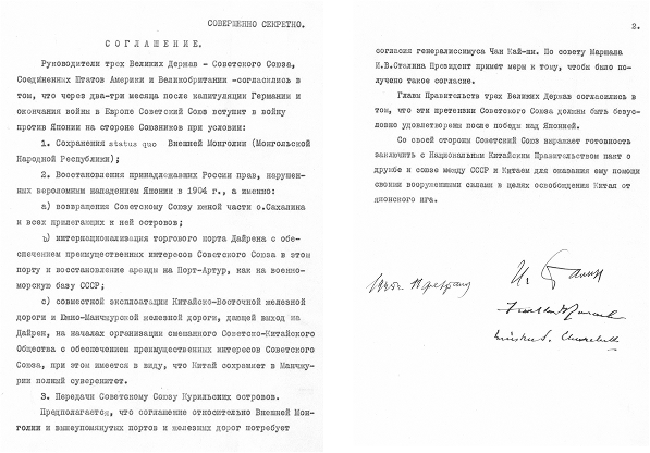 В соответствии с решениями Крымской и Потсдамской конференций Южный Сахалин был возвращён СССР.