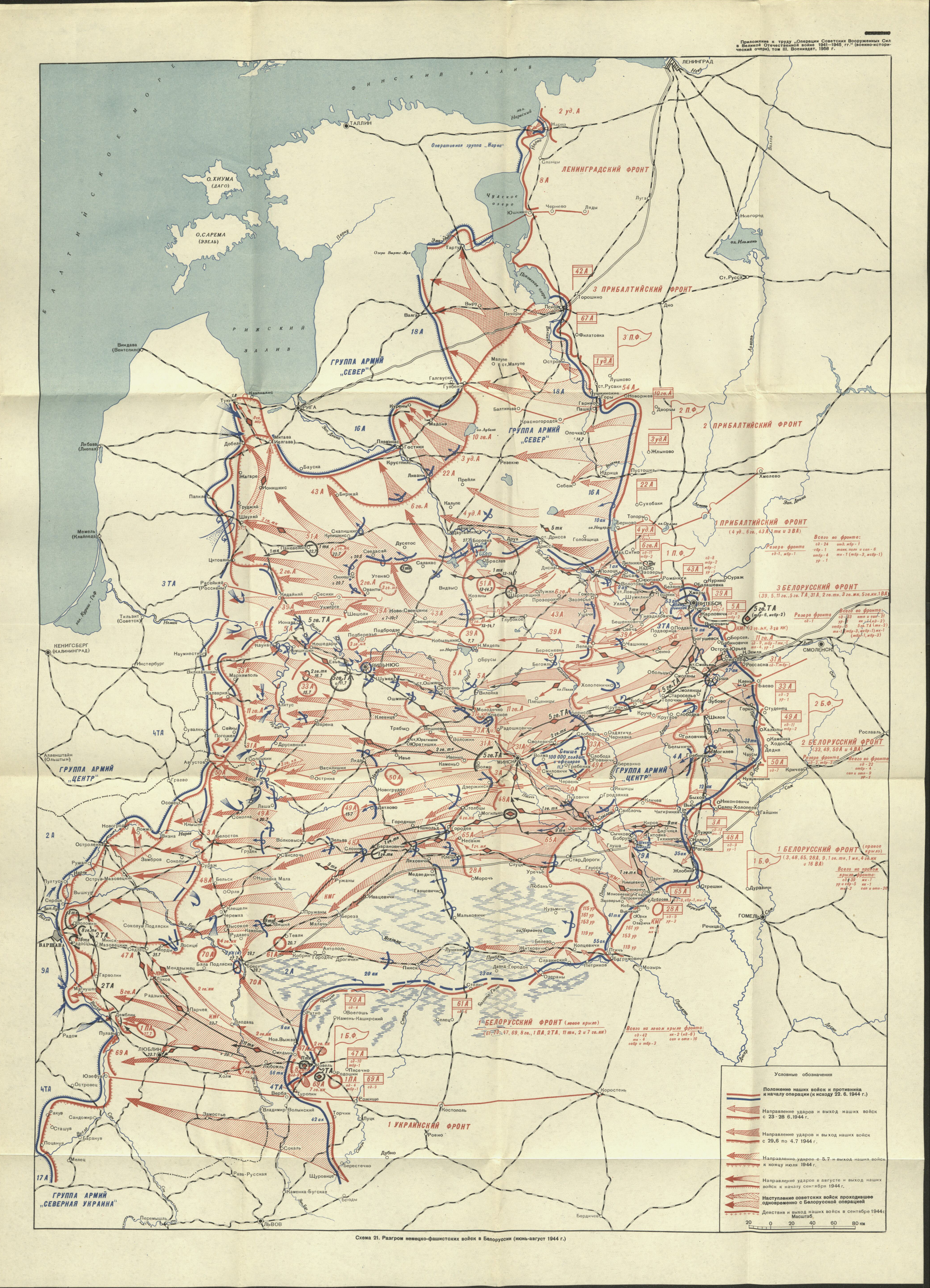 Операция «Багратион» была проведена летом 1944 года. Советские войска продвинулись на глубину до 600 км по фронту шириной 1100 км, а захваченные плацдармы стали основой для последующего наступления.