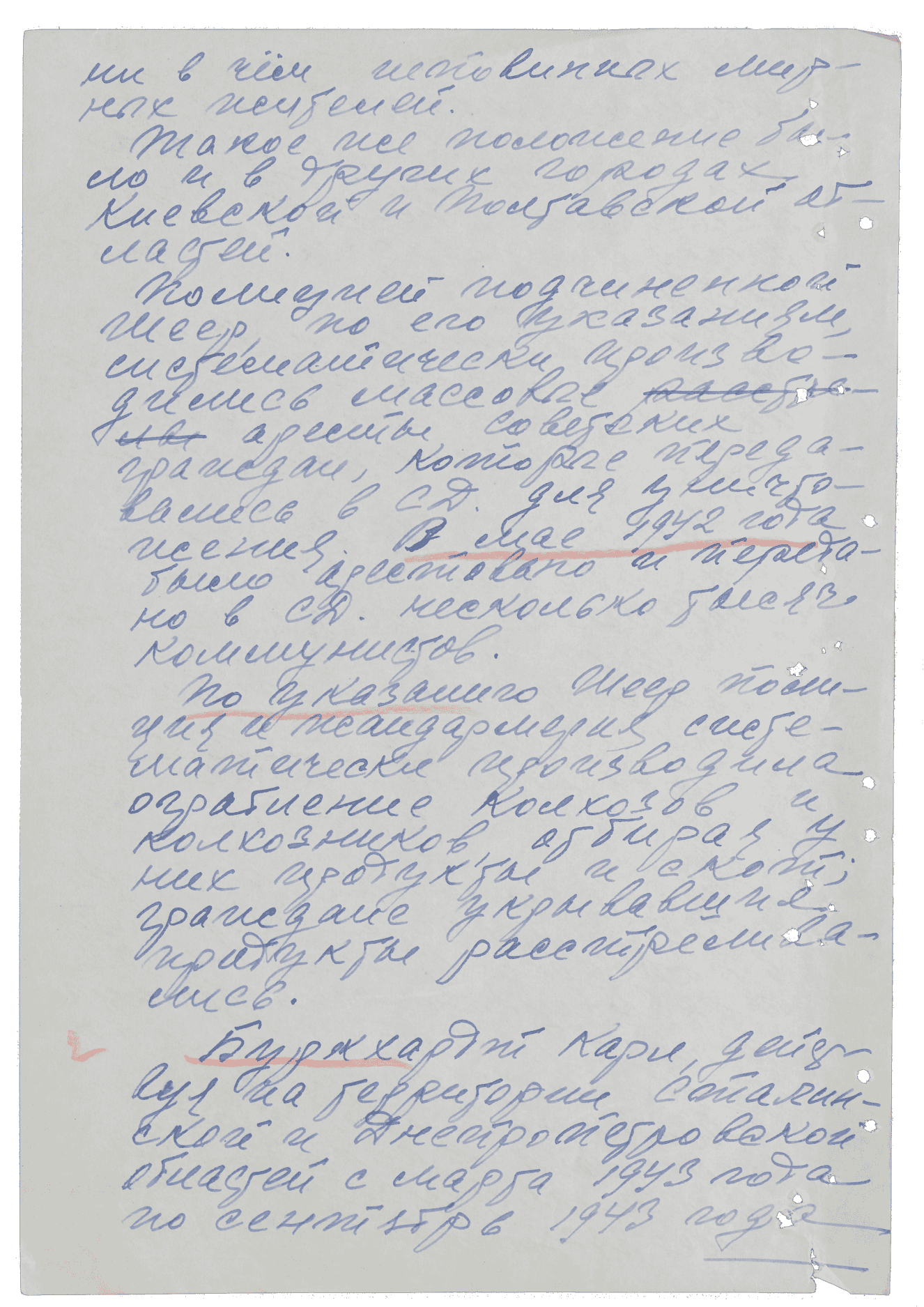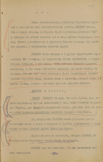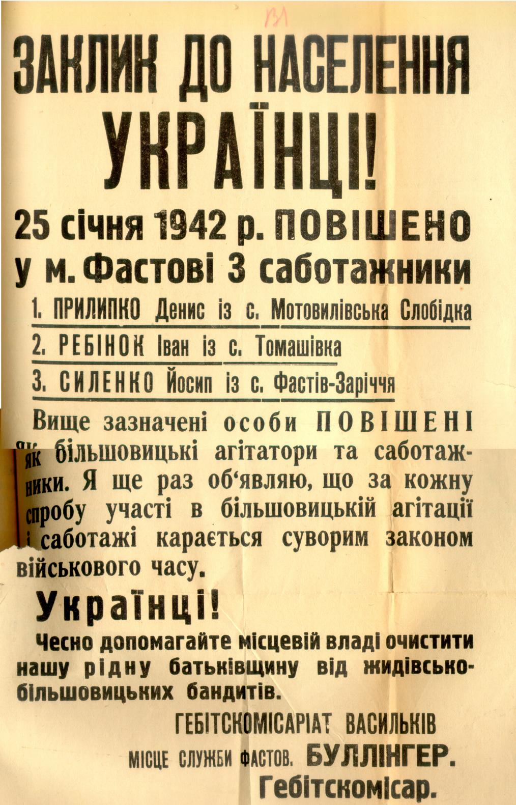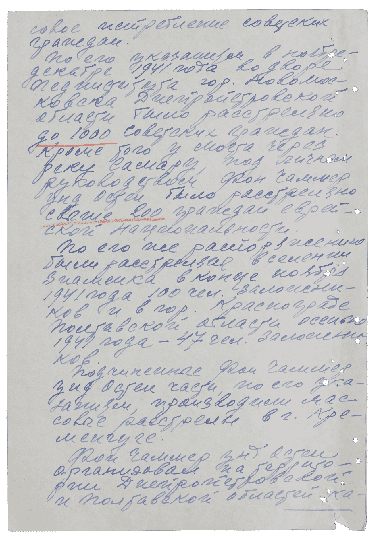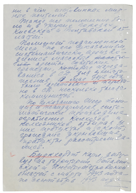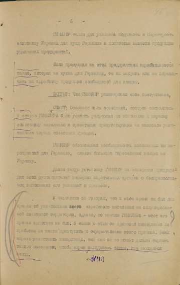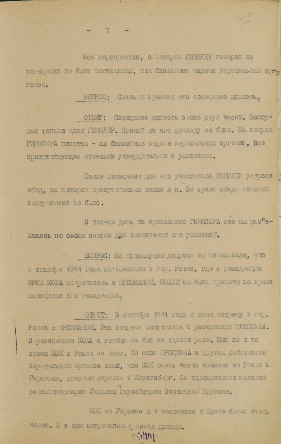 Гиммлер говорил, что наша задача, т.е. задача карательных органов заключается в том, чтобы очистить территорию Украины, для будущего переселения немцев. Для этой цели мы должны вести массовое истребление советских граждан – украинцев»…