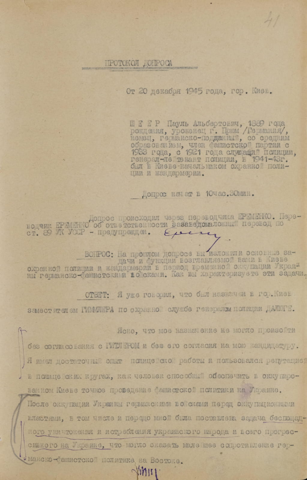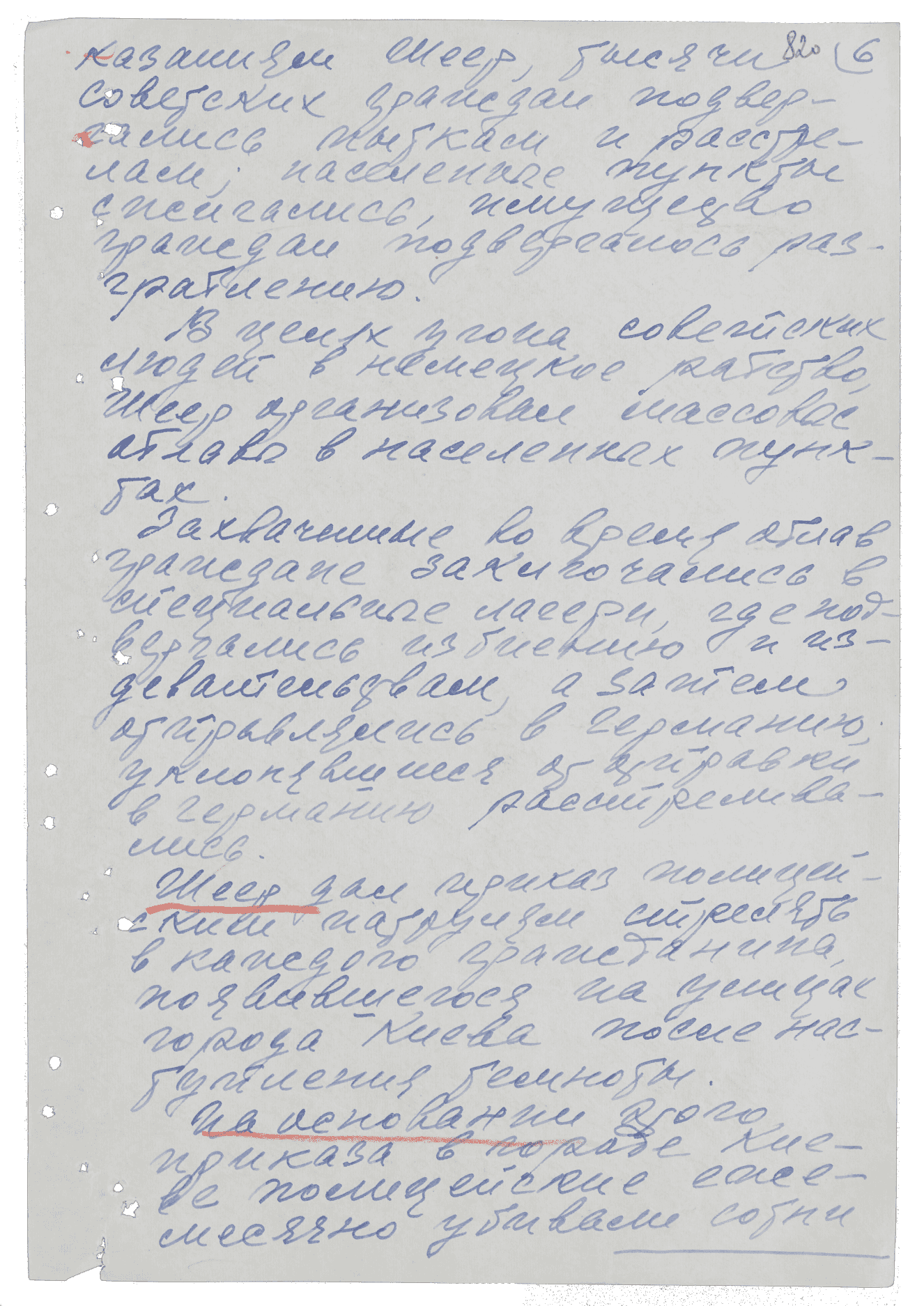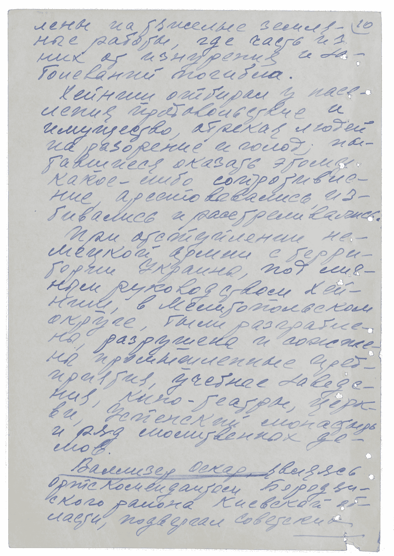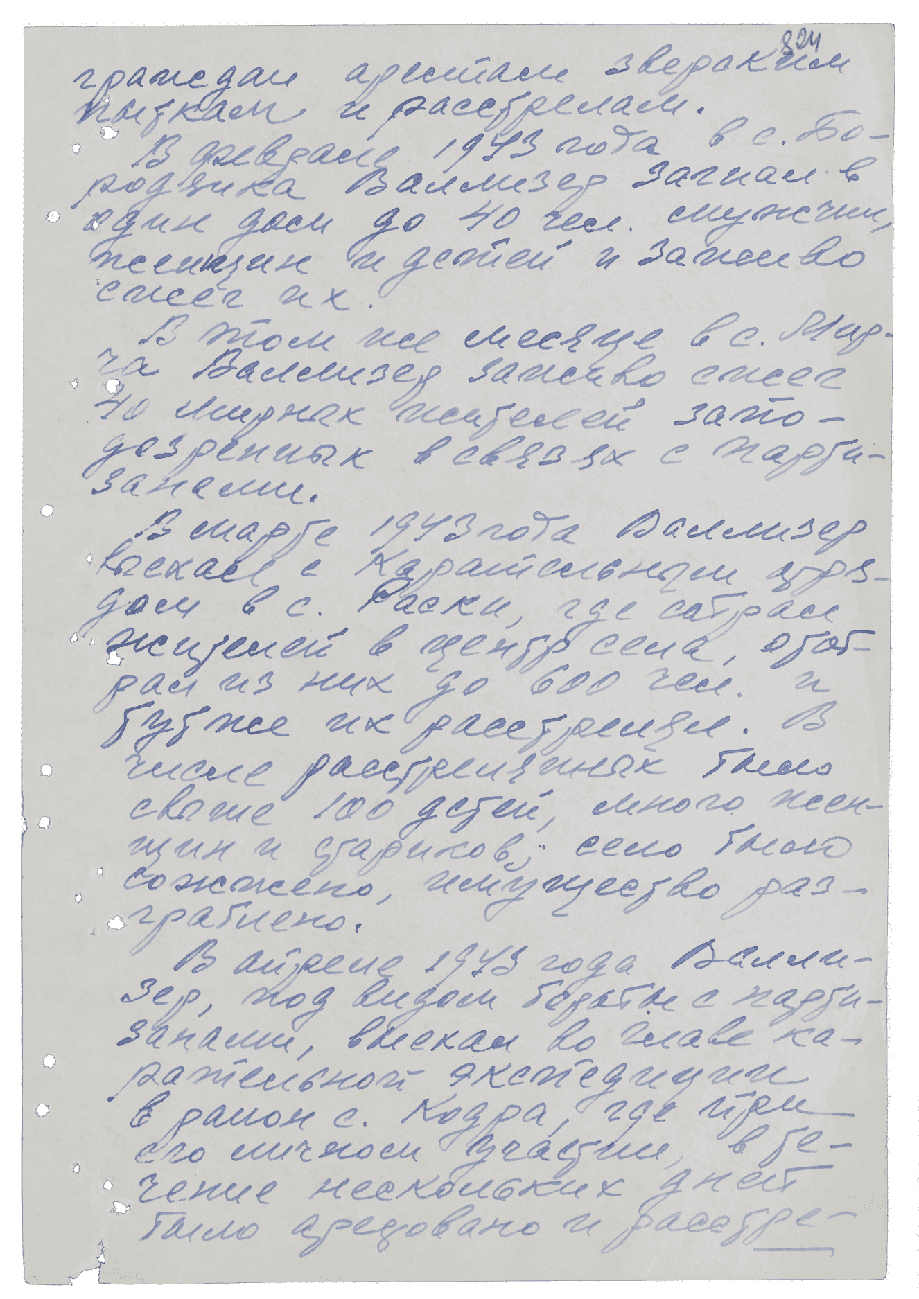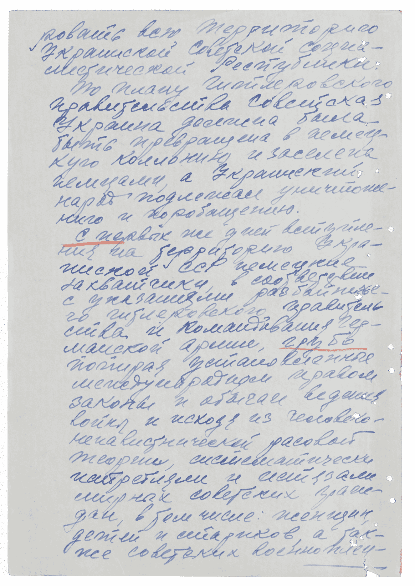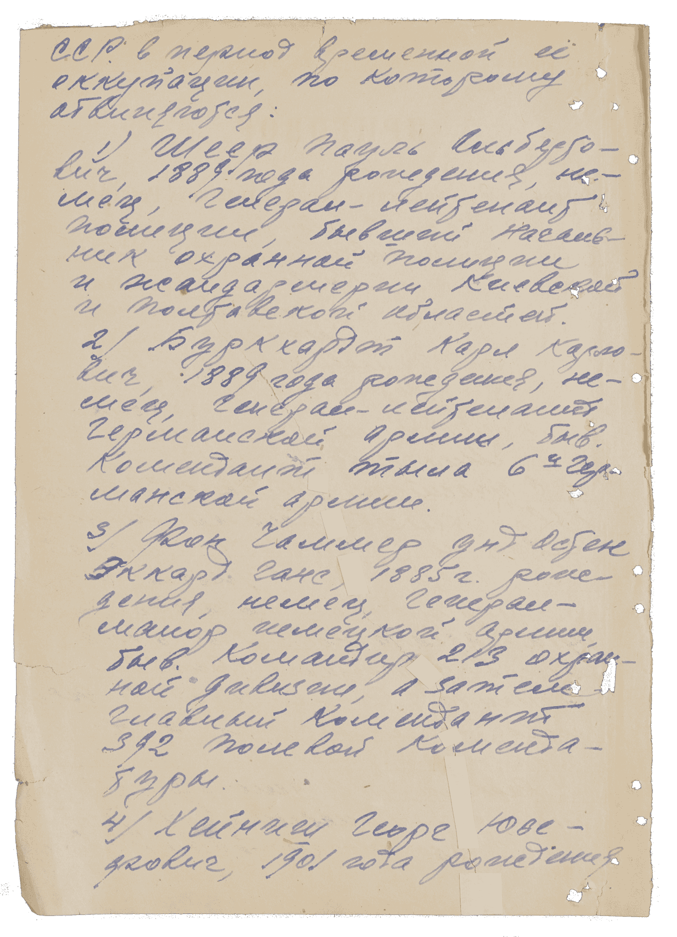 Гиммлер говорил, что наша задача, т.е. задача карательных органов заключается в том, чтобы очистить территорию Украины, для будущего переселения немцев. Для этой цели мы должны вести массовое истребление советских граждан – украинцев»…