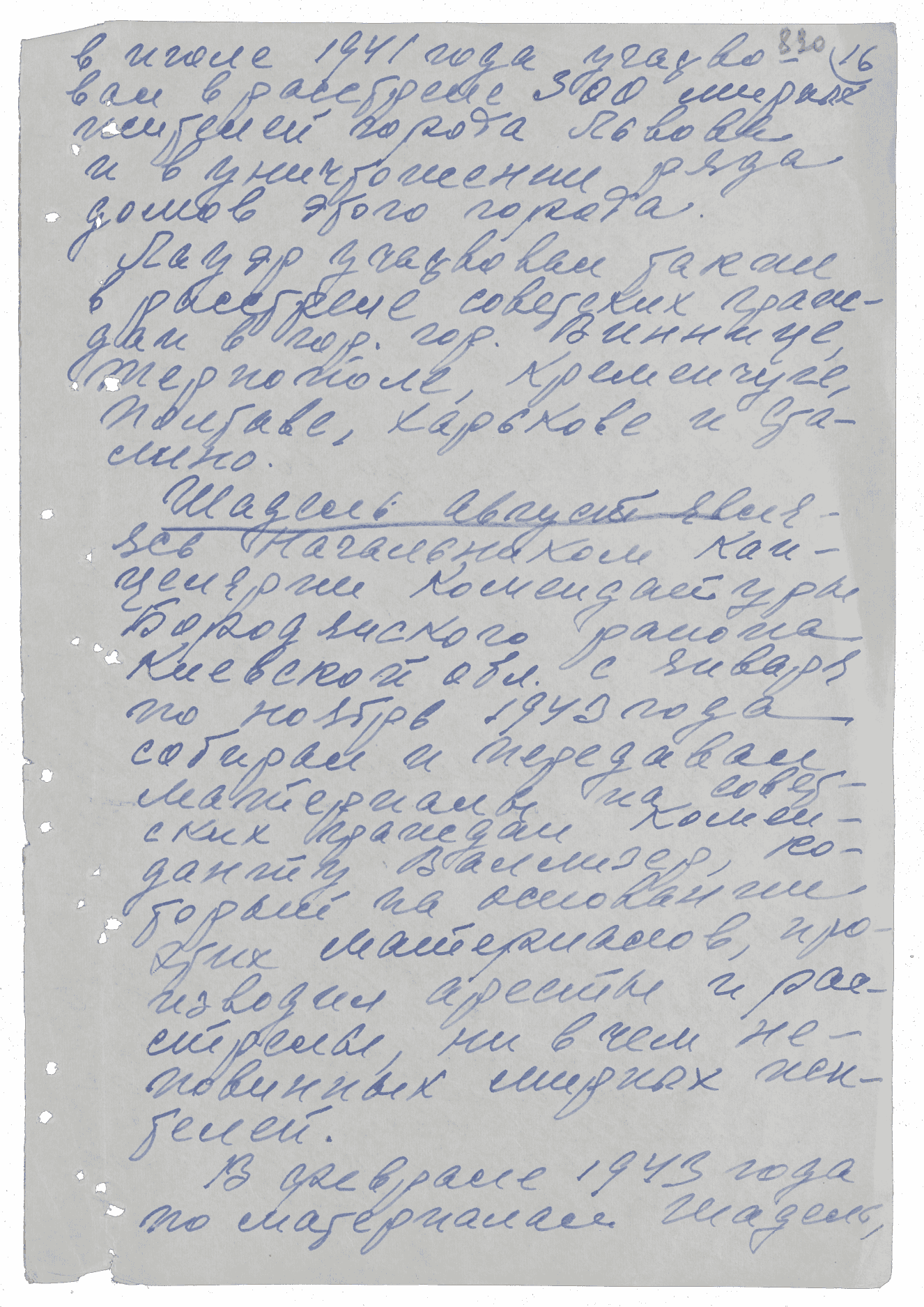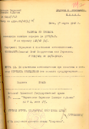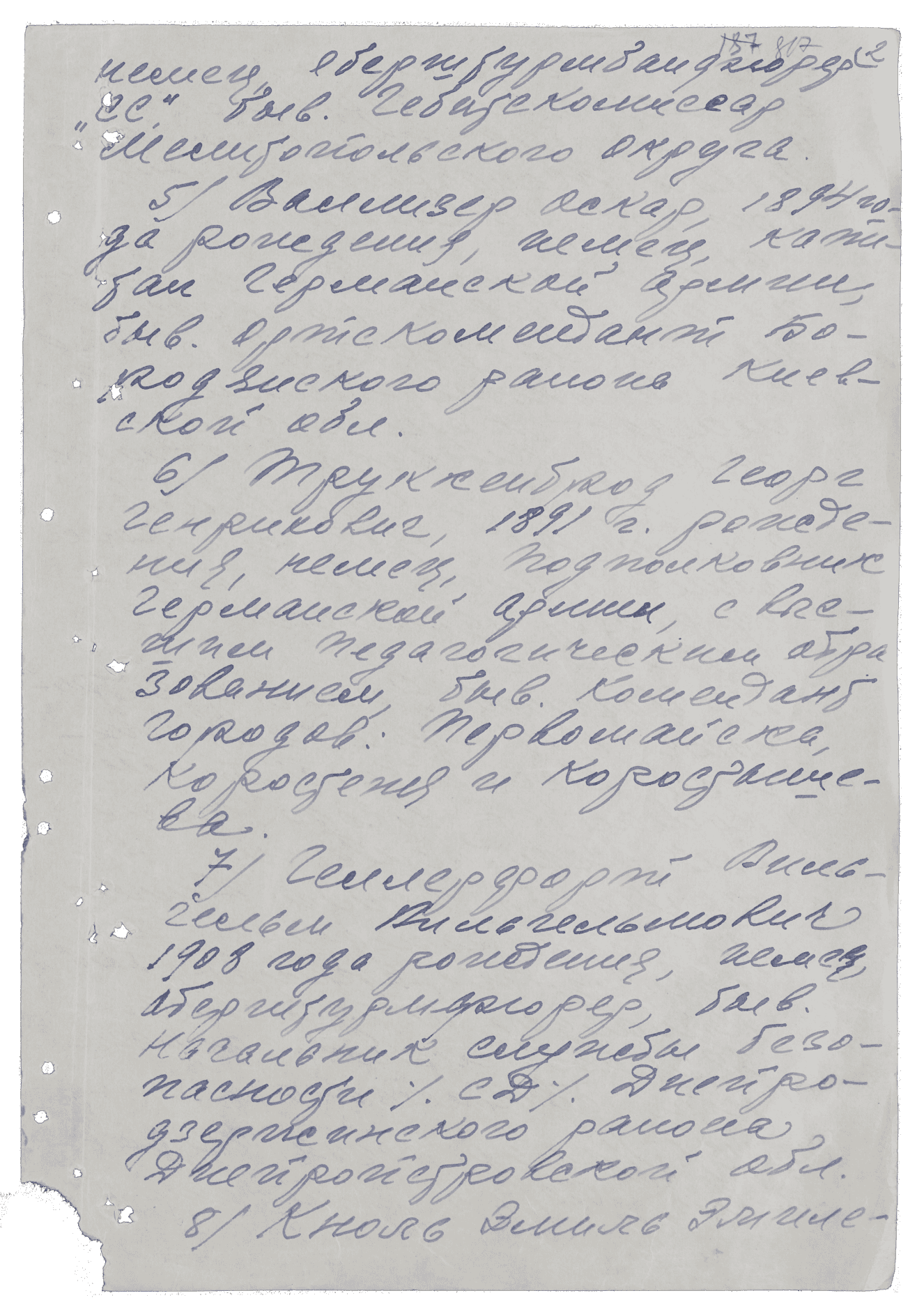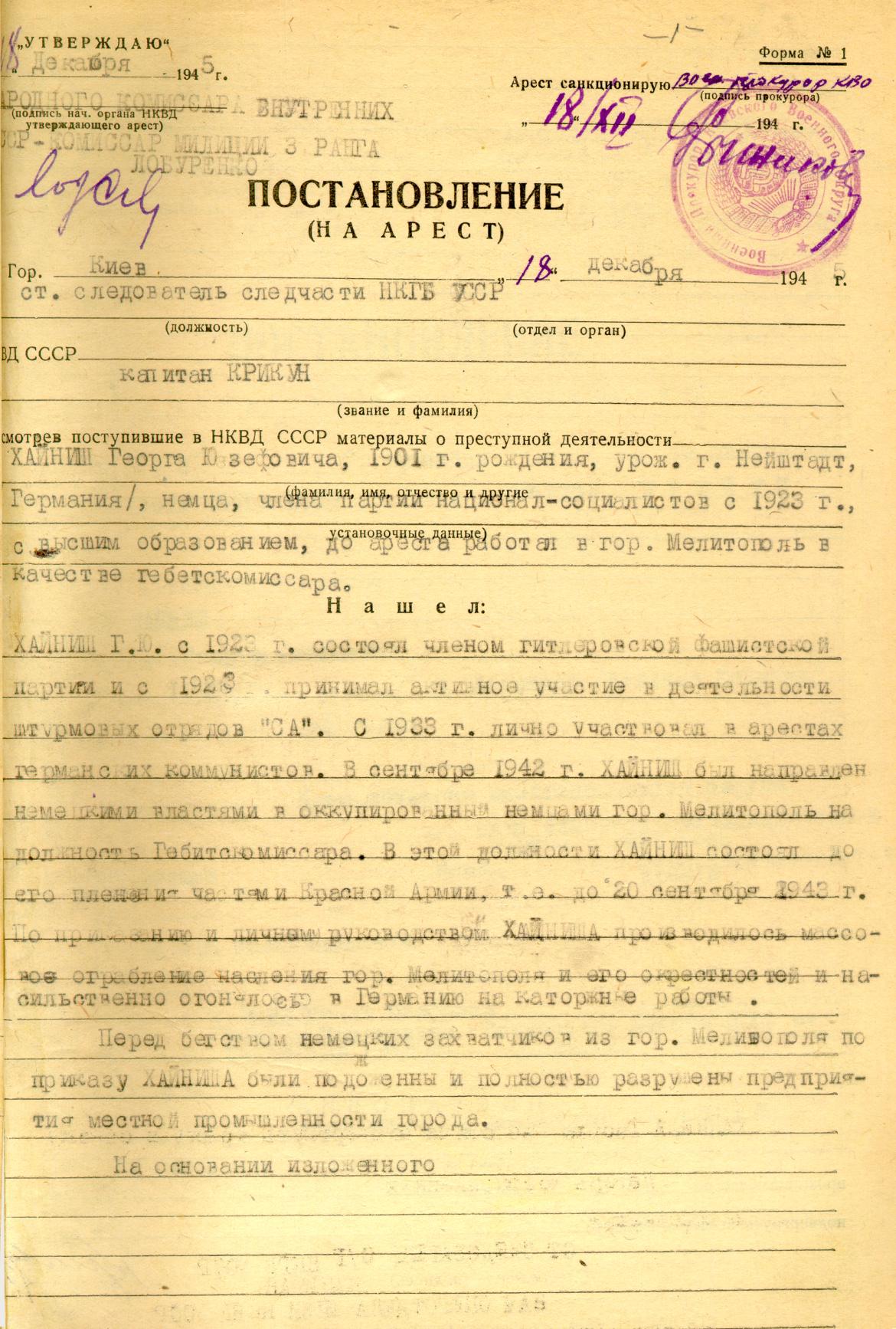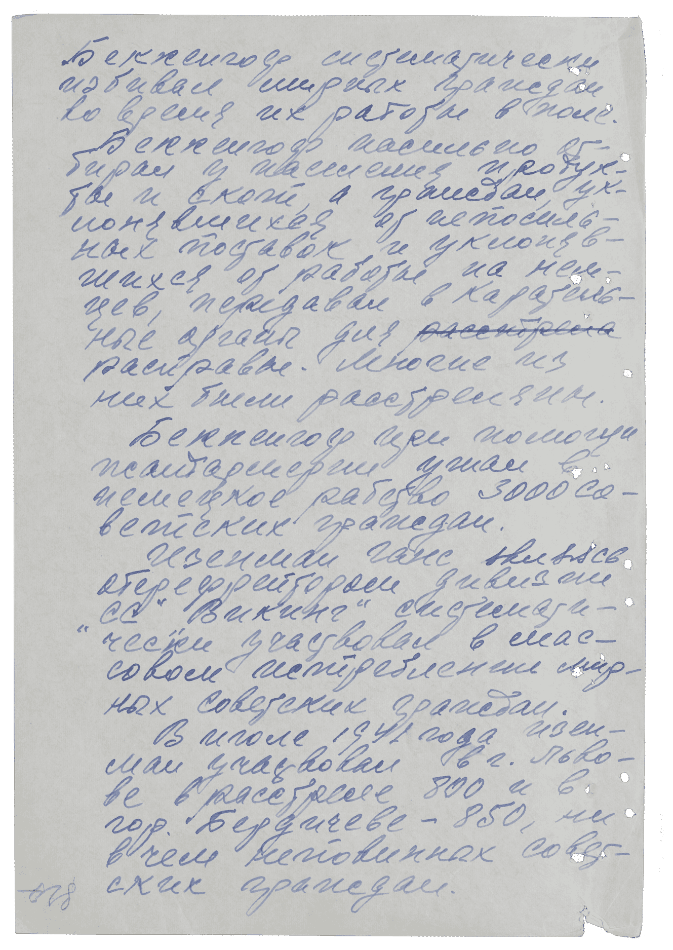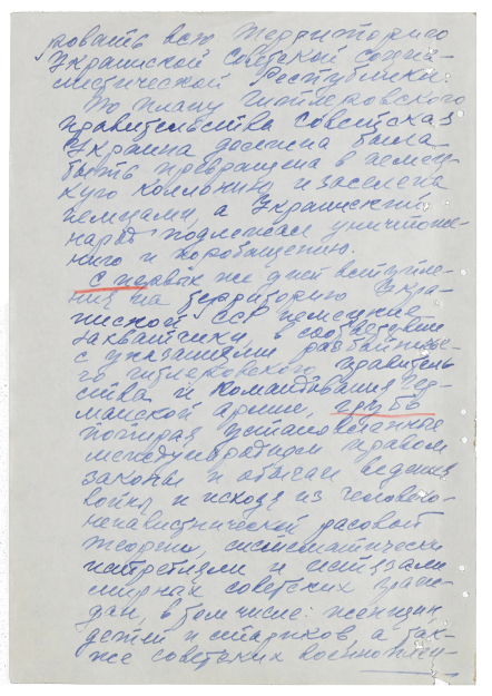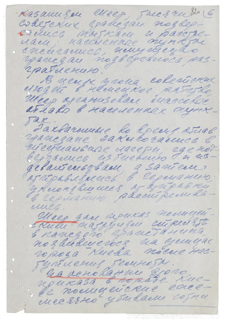 Гиммлер говорил, что наша задача, т.е. задача карательных органов заключается в том, чтобы очистить территорию Украины, для будущего переселения немцев. Для этой цели мы должны вести массовое истребление советских граждан – украинцев»…