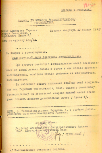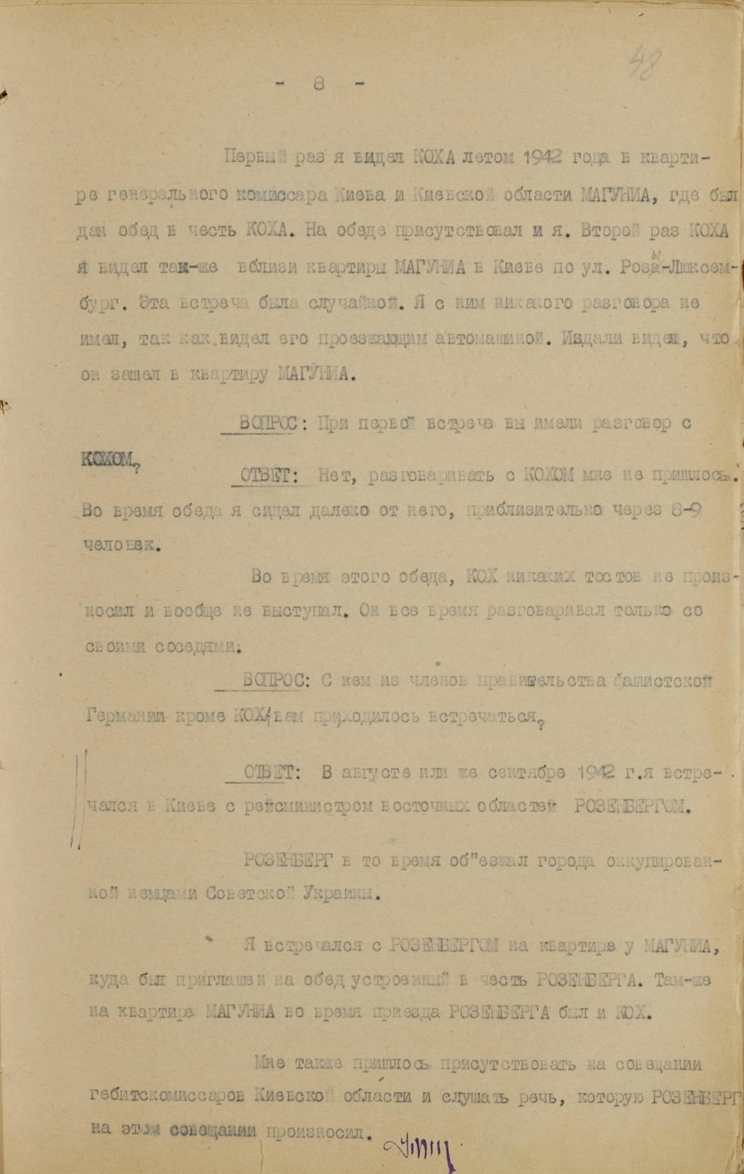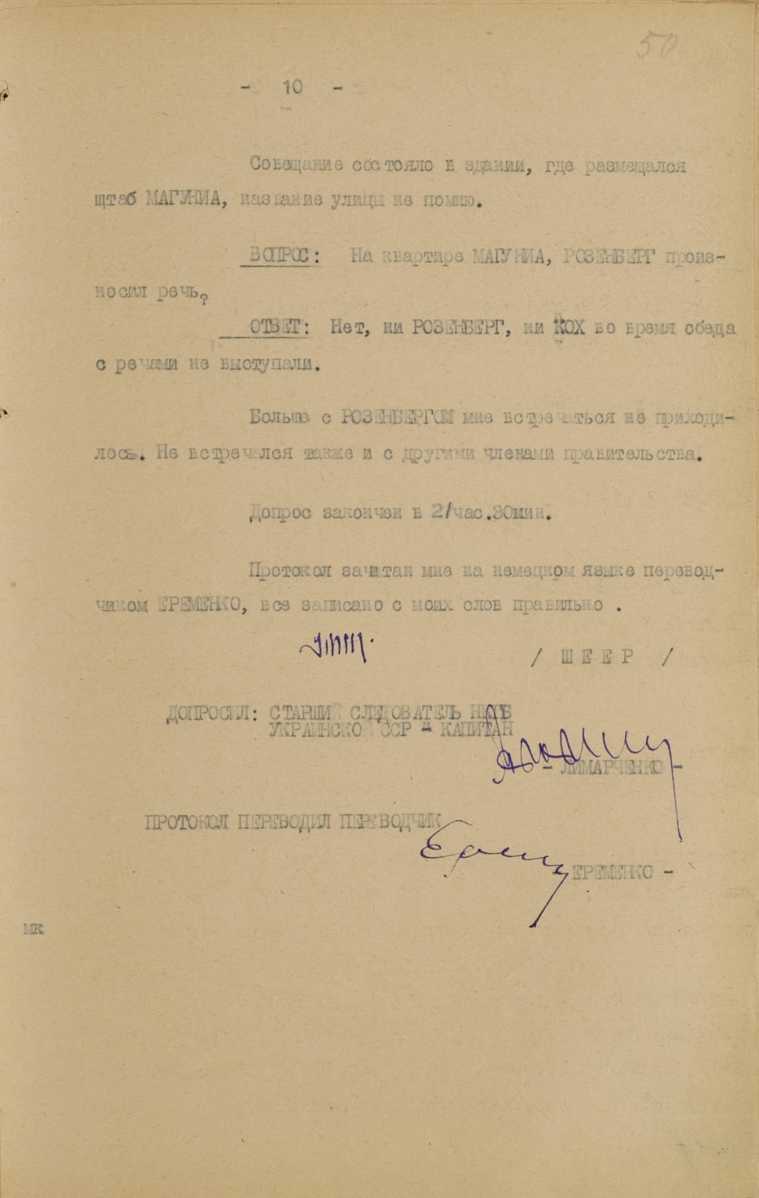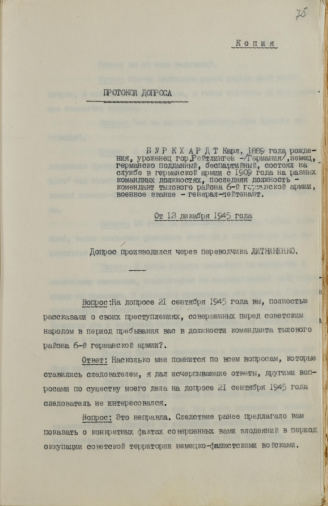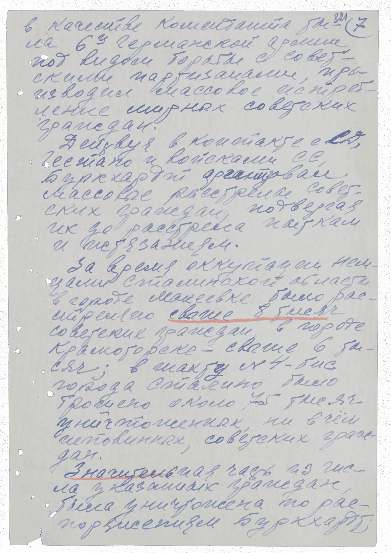 «По приезде в гор. Сталино, впоследствии ставшим моей постоянной резиденцией и вступив в исполнение обязанностей коменданта тылового района 6 армии, я как дисциплинированный солдат германской армии, принял все зависящие от меня меры к выполнению данных Голлит указаний». К. Буркхардт