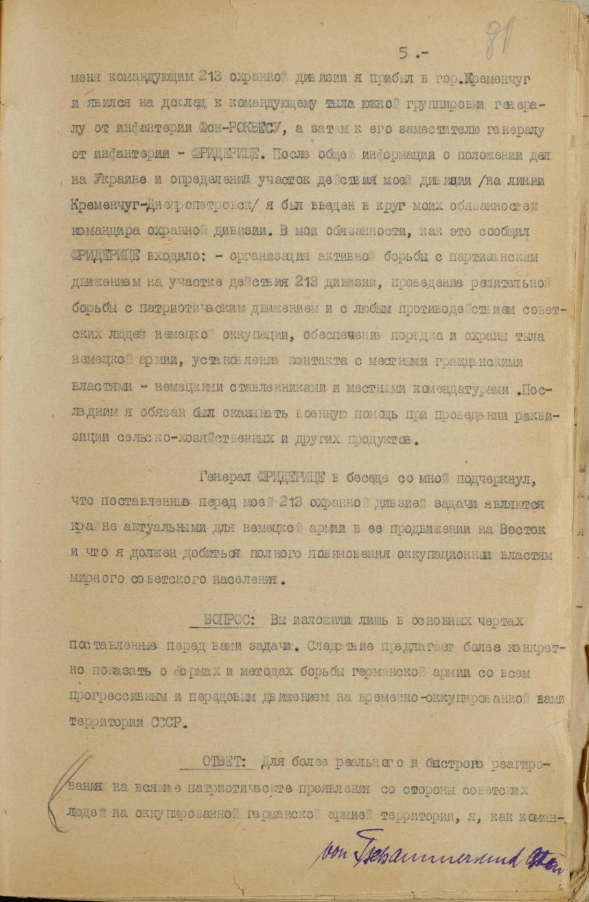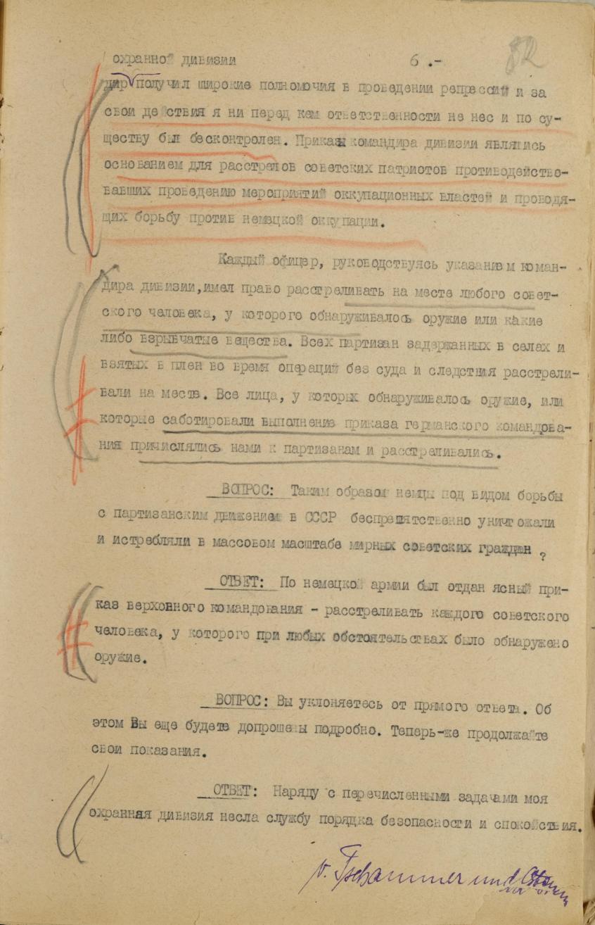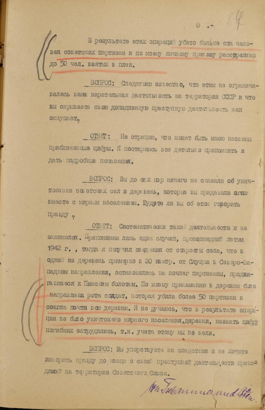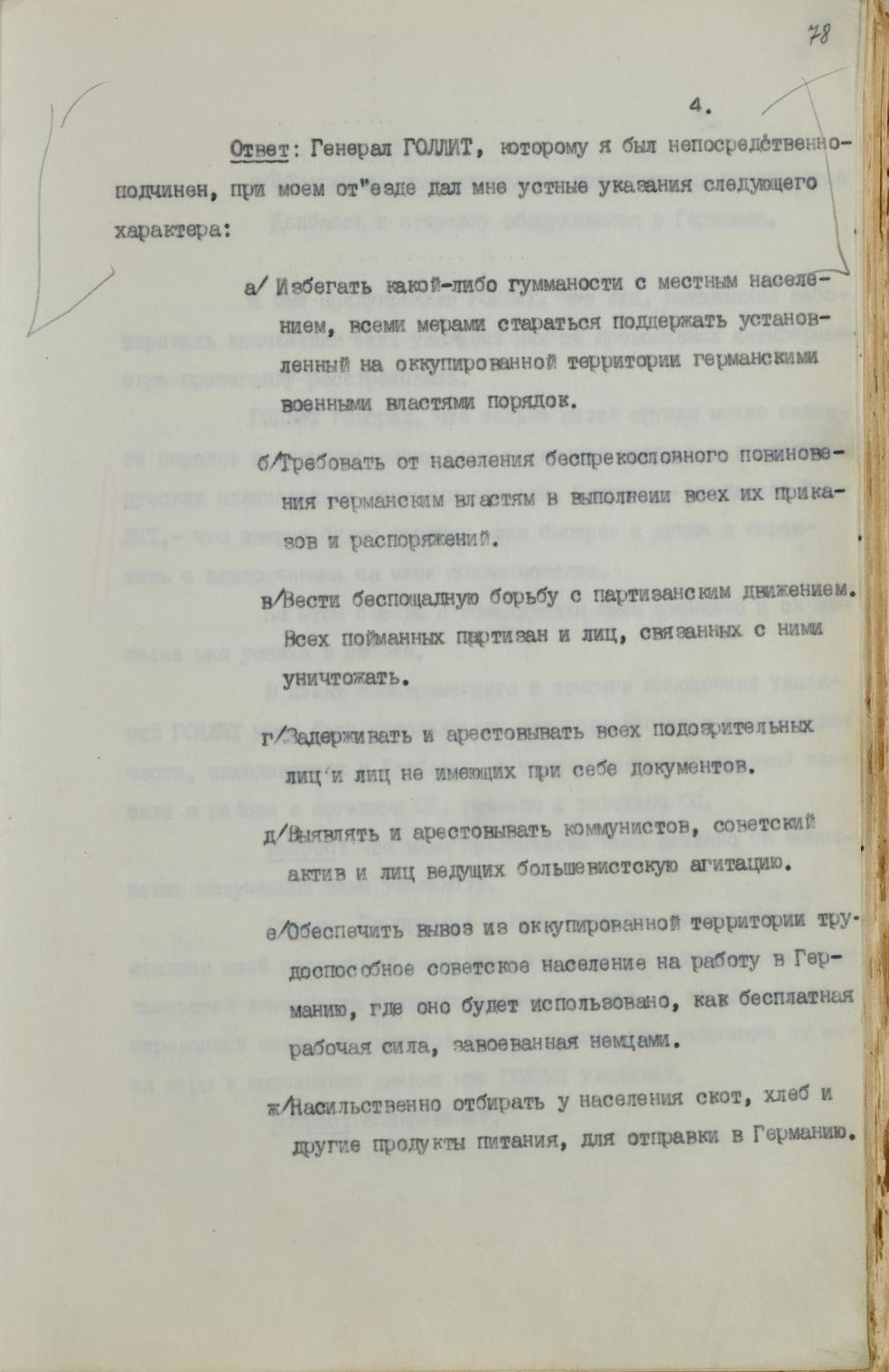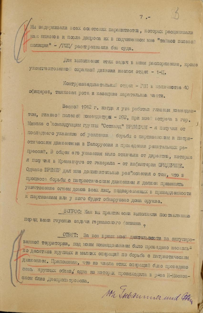 Из материалов допроса Экхарда фон Чаммер унд Остена, генерал-майора вермахта, бывшего командира 213-ой охранной дивизии и коменданта 392-ой комендатуры (г. Минск).