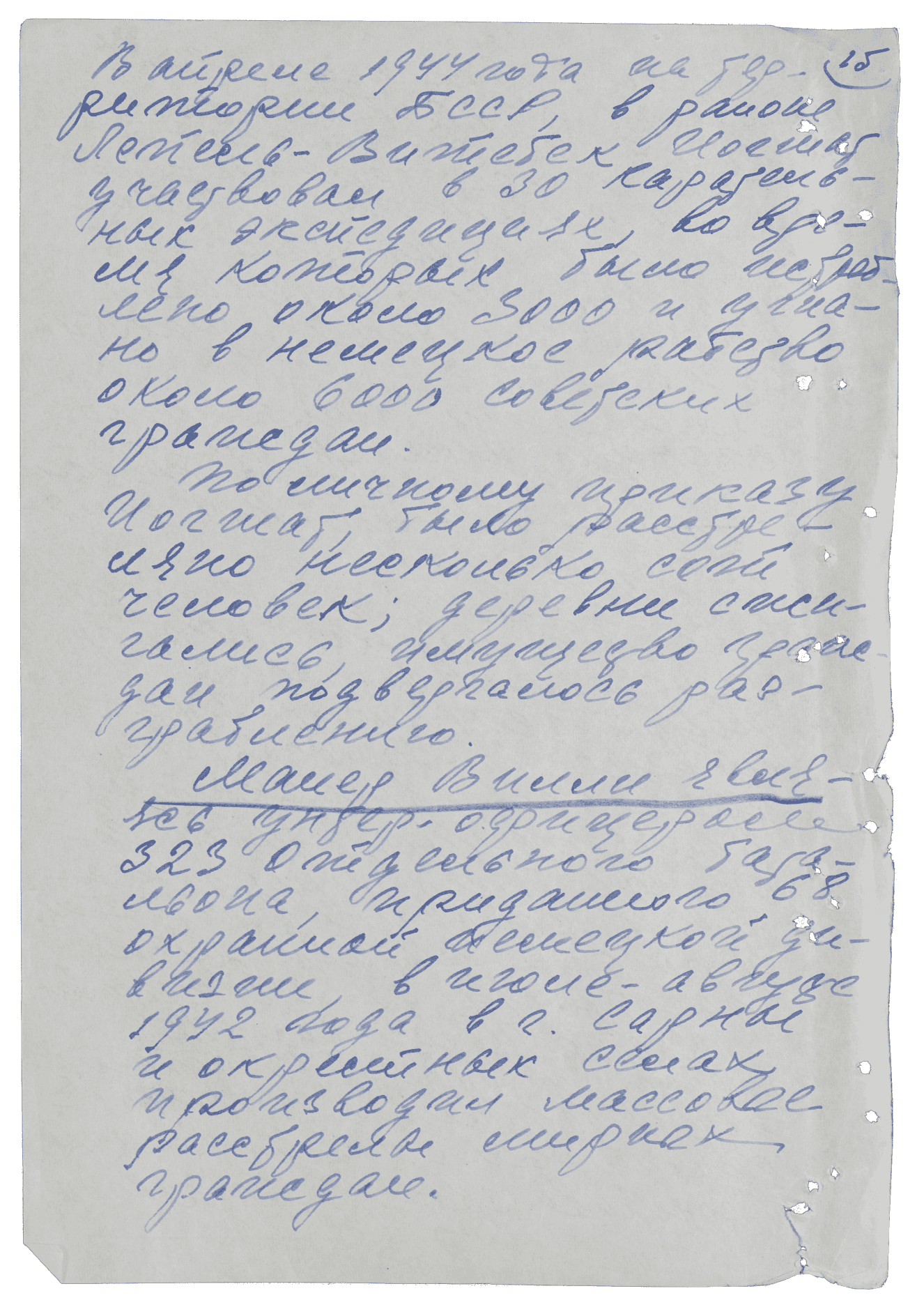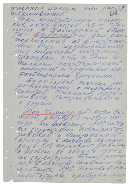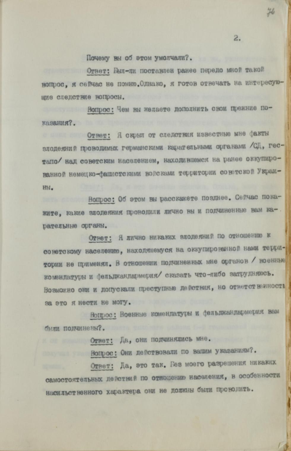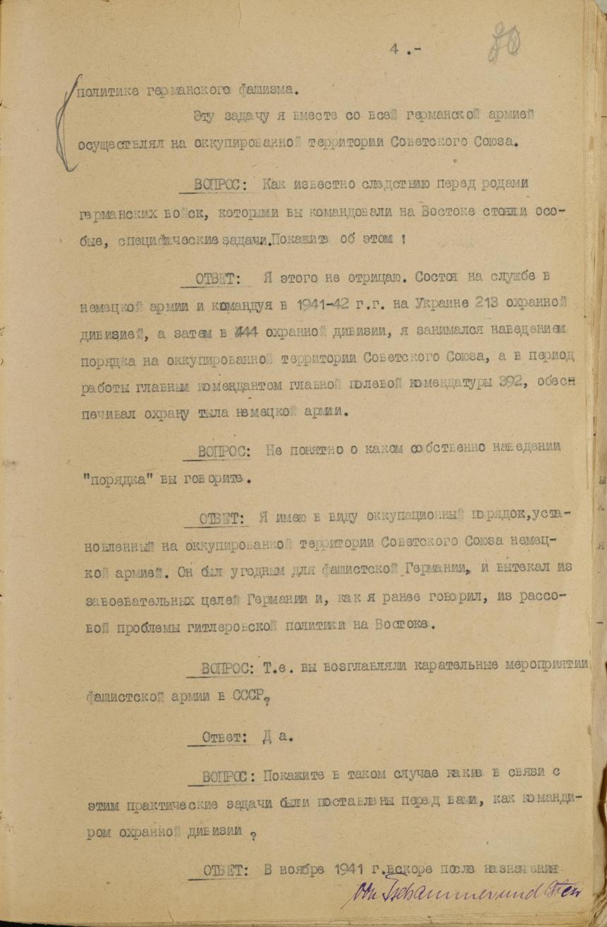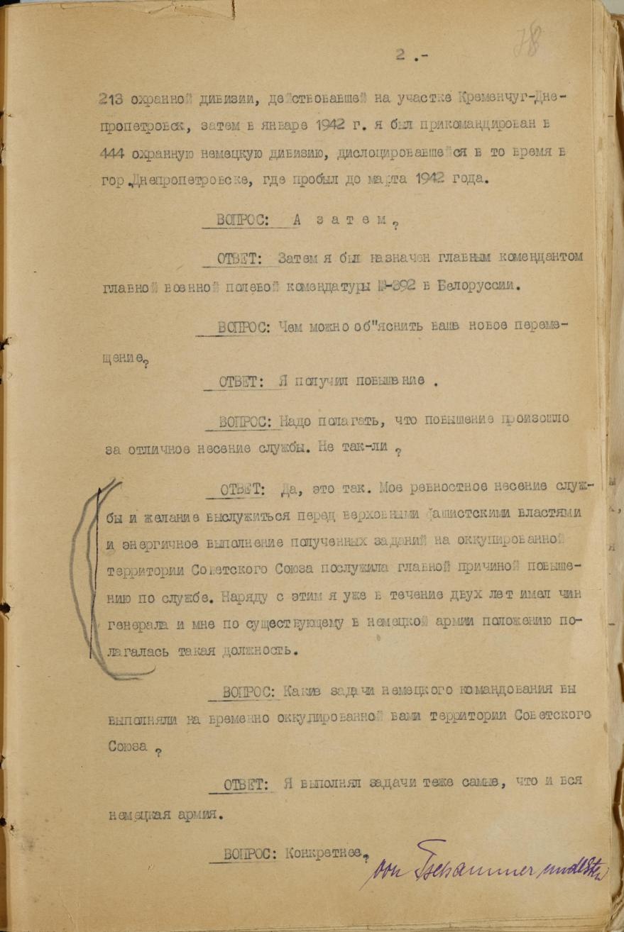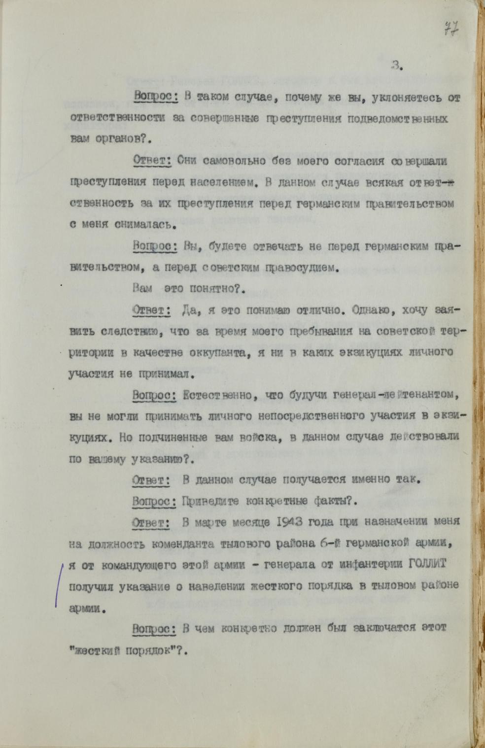 Из материалов допроса Экхарда фон Чаммер унд Остена, генерал-майора вермахта, бывшего командира 213-ой охранной дивизии и коменданта 392-ой комендатуры (г. Минск).