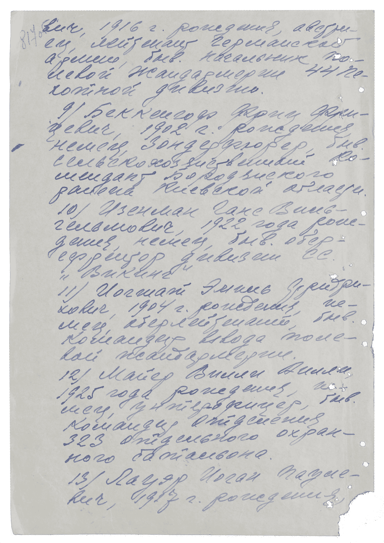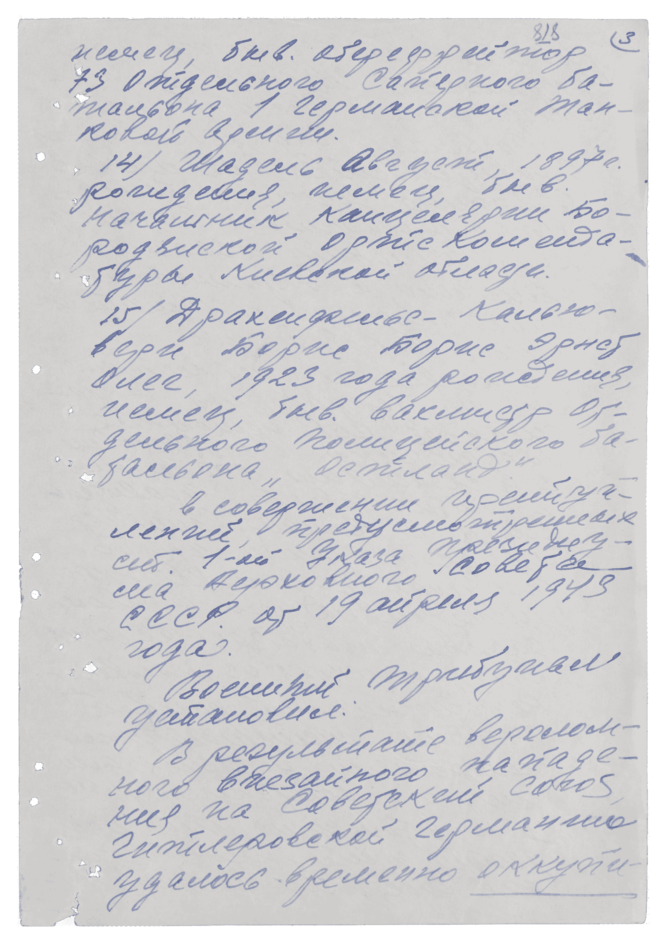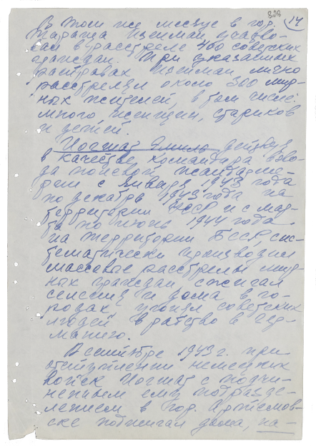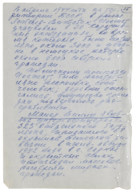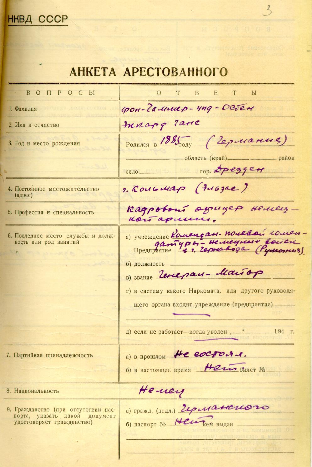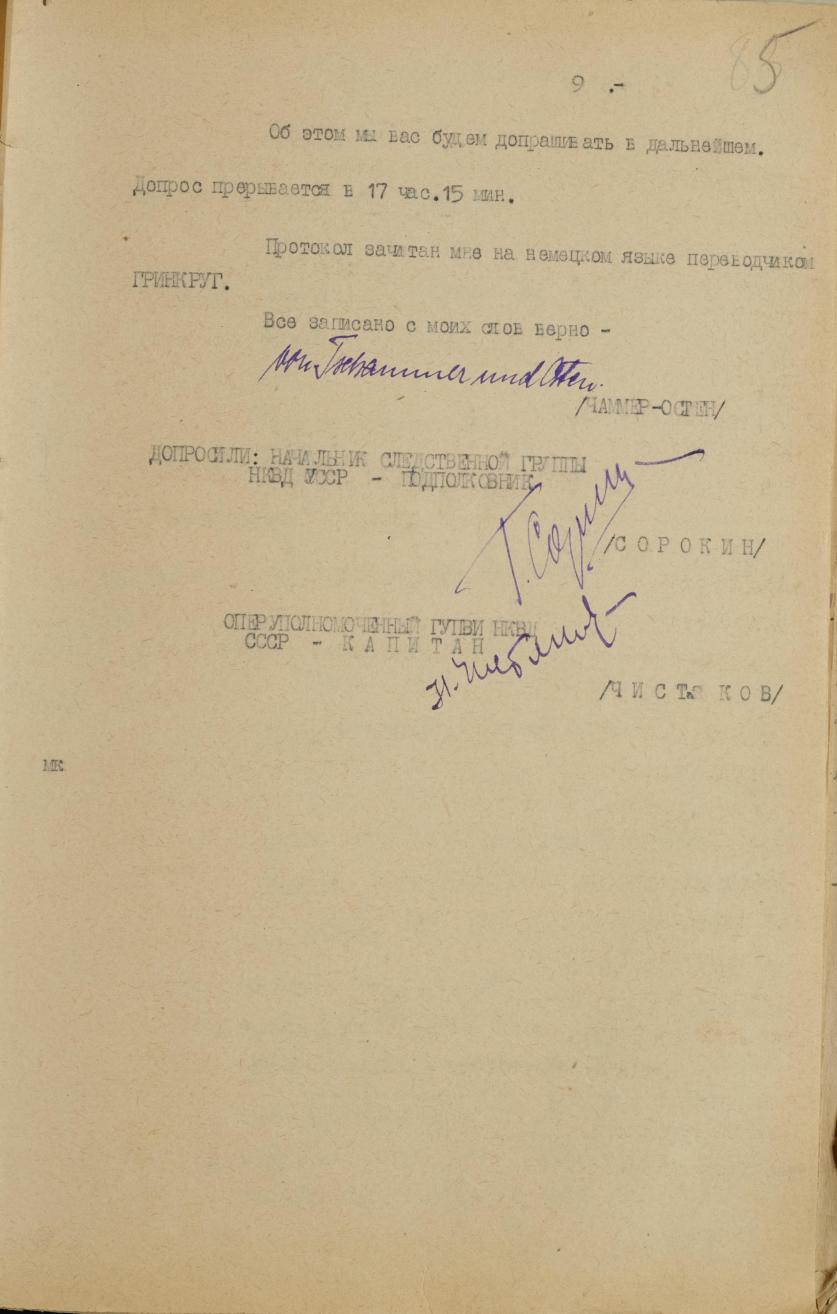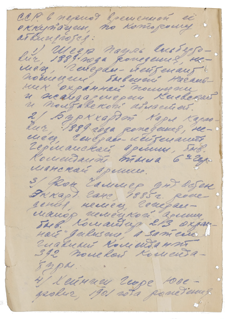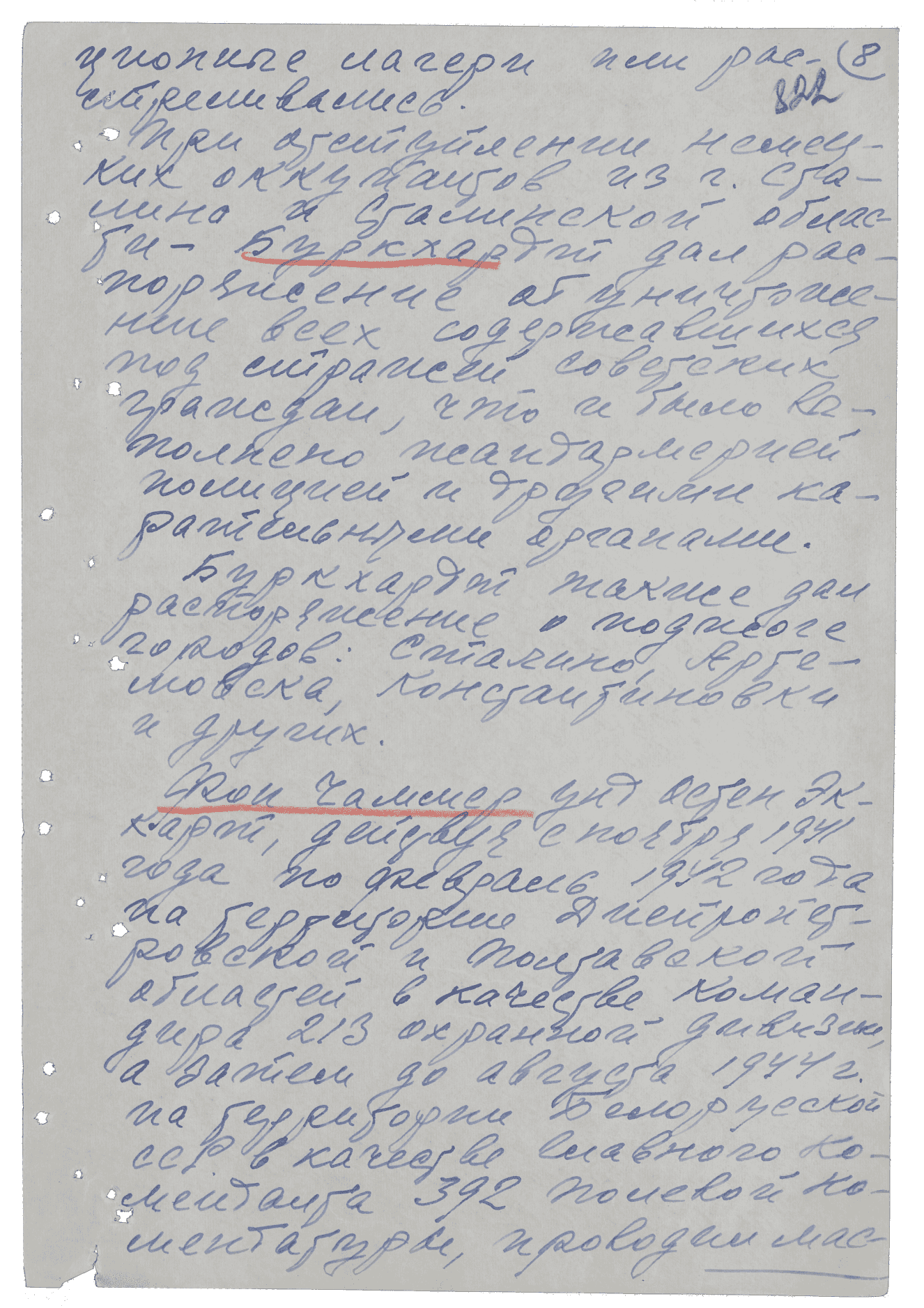 Из материалов допроса Экхарда фон Чаммер унд Остена, генерал-майора вермахта, бывшего командира 213-ой охранной дивизии и коменданта 392-ой комендатуры (г. Минск).