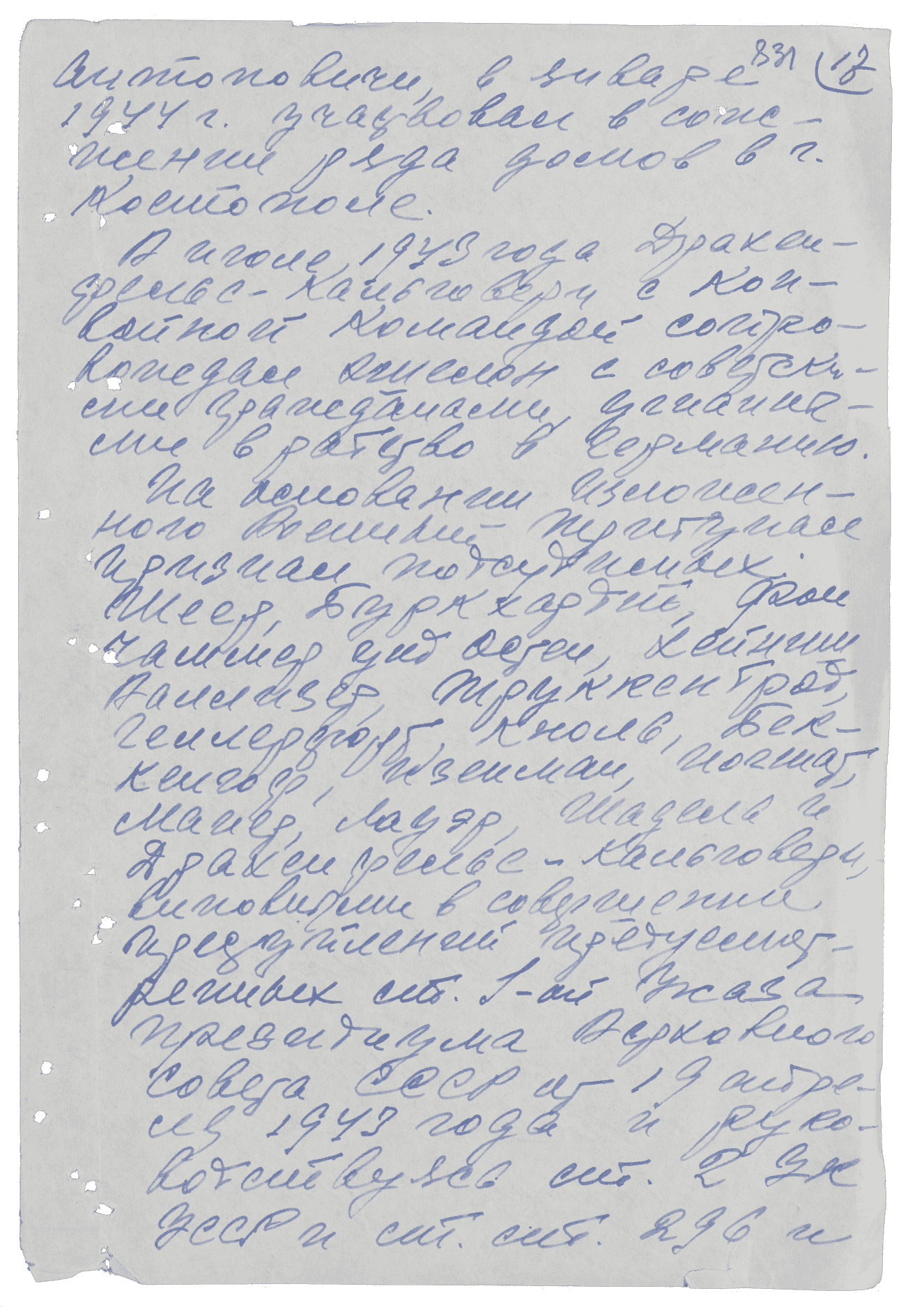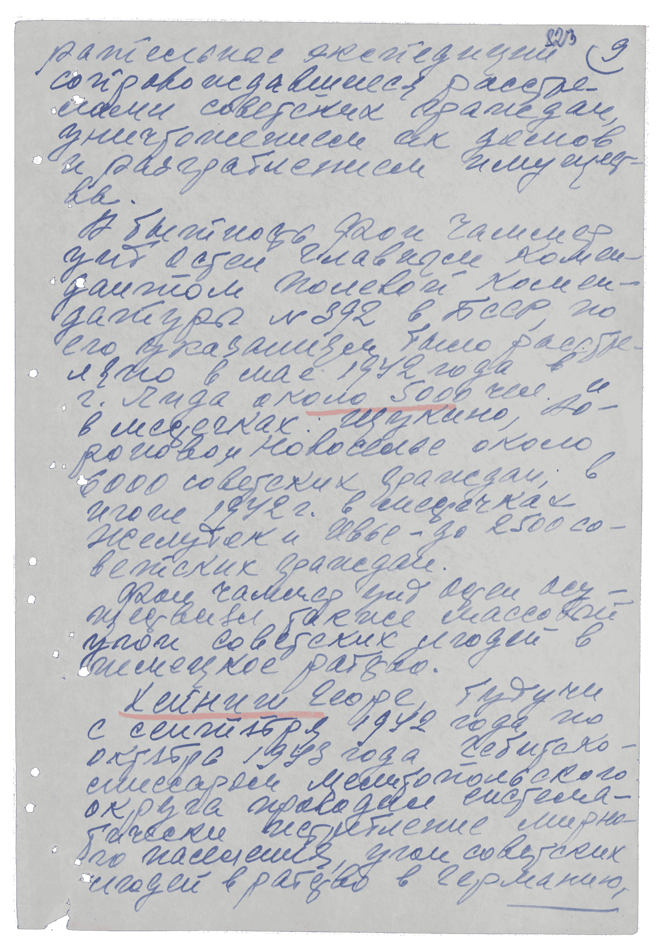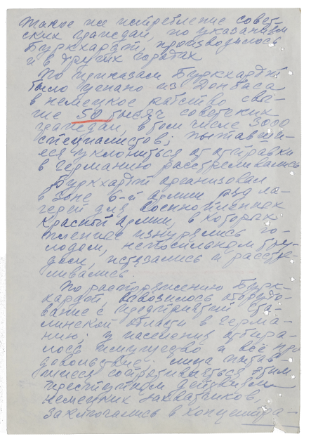 «Мобилизация и отправка (населения) проводилась с мая по июль м-ц 1943 г., были взяты 4 возраста с 1918 по 1921 год рождения». К. Буркхардт