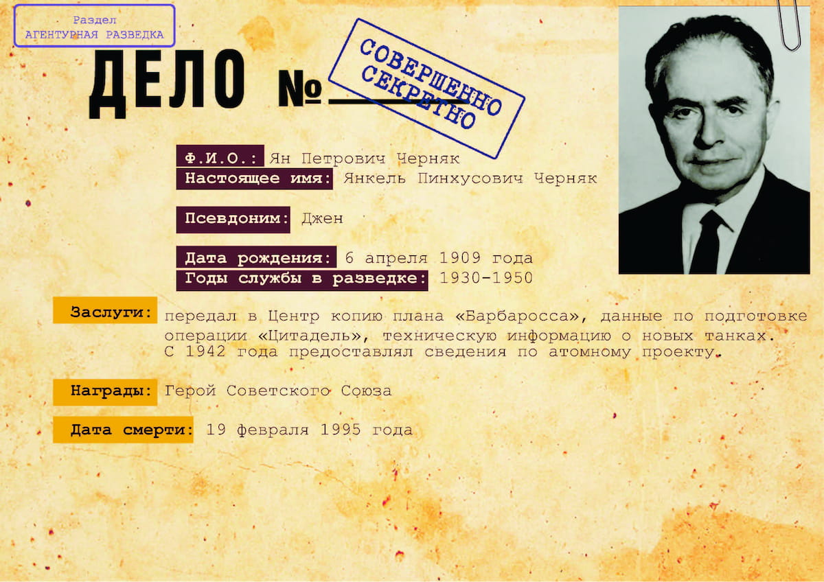 В истории военной разведки «Крона» считается одной из лучших. За 10 лет работы в ней не случилось ни одного провала. Ее руководитель – Ян Черняк, «Джен» – талантливый и весьма аккуратный разведчик, создавший мощнейшую разведывательную сеть на территории Европы (Германия, Франция, Швейцария, Великобритания) и в последствии – в Канаде и США.