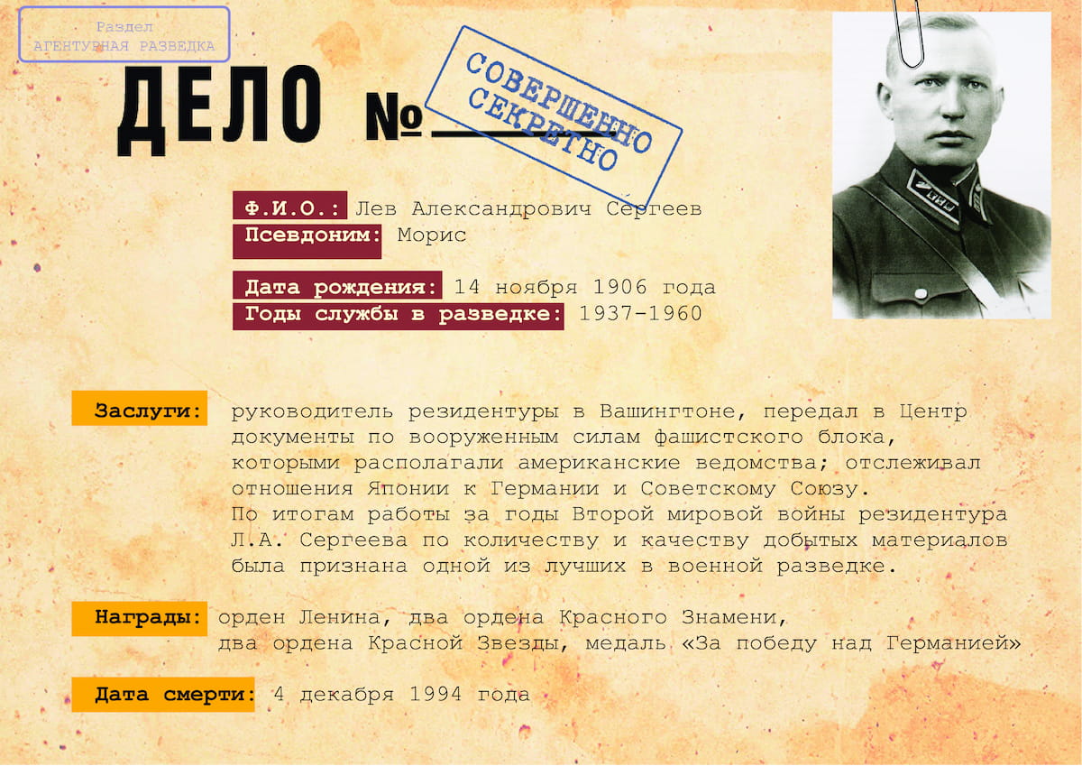 В США в 1941-1946 годах под руководством Л.А. Сергеева действовала группа «Омега» с центром в Вашингтоне. Ни один из агентов сети не был выявлен американской контрразведкой.