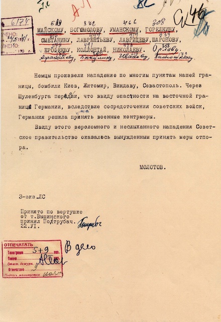 В воскресенье, 22 июня 1941 г., в 12 часов дня Нарком иностранных дел СССР обратился по радио к гражданам, сообщив о нападении нацистской Германии и начале Великой Отечественной войны