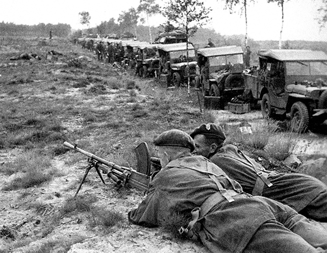 Британские солдаты охраняют автоколонну от возможного германского нападения