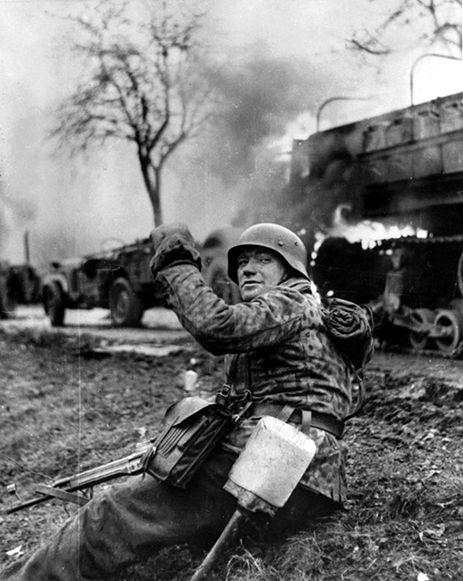 Военнослужащий 1-й танковой дивизии СС на дороге Пото-Рехт