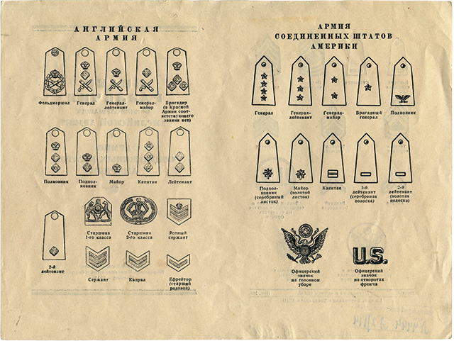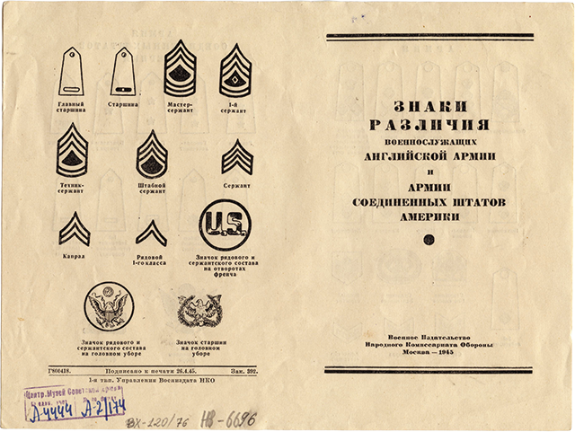 Буклет «Знаки различия военнослужащих английской армии и армии Соединенных Штатов Америки»