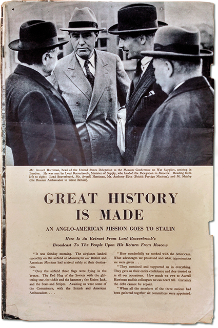 Статья о визите У. Эйткена, лорда Бивербрука. Впечатленный борьбой советского народа, Эйткен вернулся в Лондон, готовый убедить Черчилля открыть Второй фронт в Европе, чтобы отвлечь немецкие ресурсы далеко от Восточного фронта и помочь СССР
