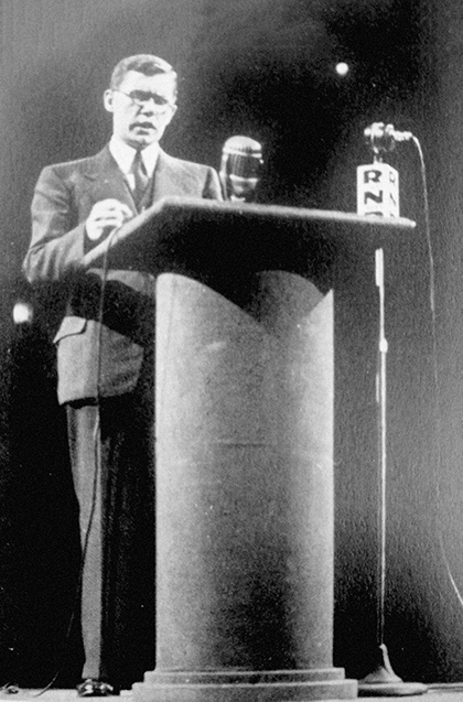 Советник посольства СССР в США А.А. Громыко выступает в «Мэдисон-сквер-гарден»
