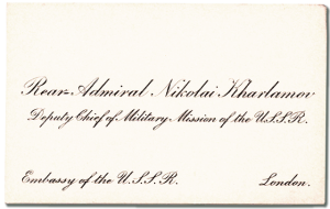 Визитная карточка контр-адмирала Н.М. Харламова, заместителя главы Советской военной миссии в Великобритании