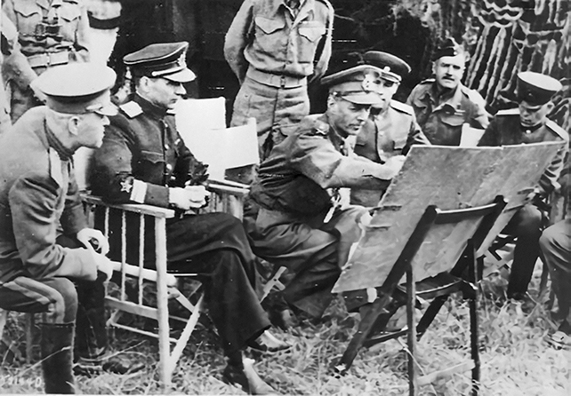 В центре – генерал-фельдмаршал Кейтель, рядом – адмирал Фриденбург (в черном мундире), слева – генерал-полковник авиации Штумпф